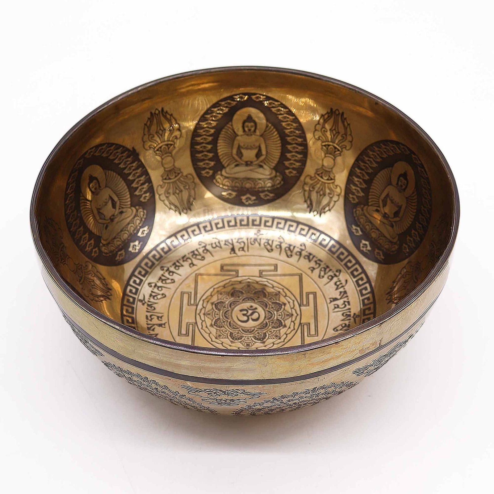 The "Om" symbol is a sacred sound and spiritual icon representing the ultimate reality, consciousness, and oneness. The engraving of Buddha signifies enlightenment and inner peace. This bowl offers a profound meditative experience by combining the power of "Om" with the guidance of Buddha.